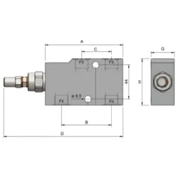 Valvola di blocco pilotata a doppio effetto per cilindri...